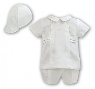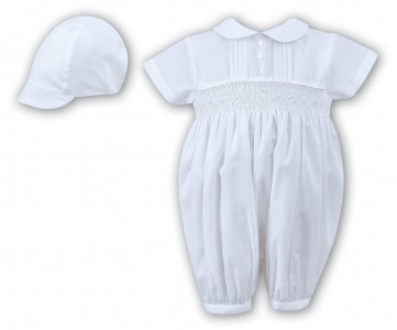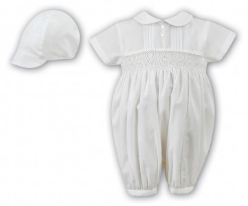 Sarah Louise 002200 Ivory hand smocked romper and cap