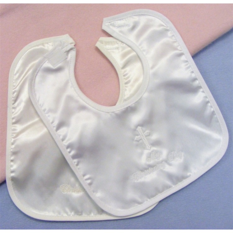 Satin christening bib with cross