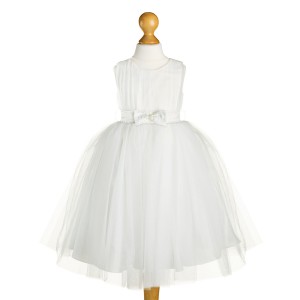 Sleeveless dress with tulle pleated bodice and fully lined skirt.