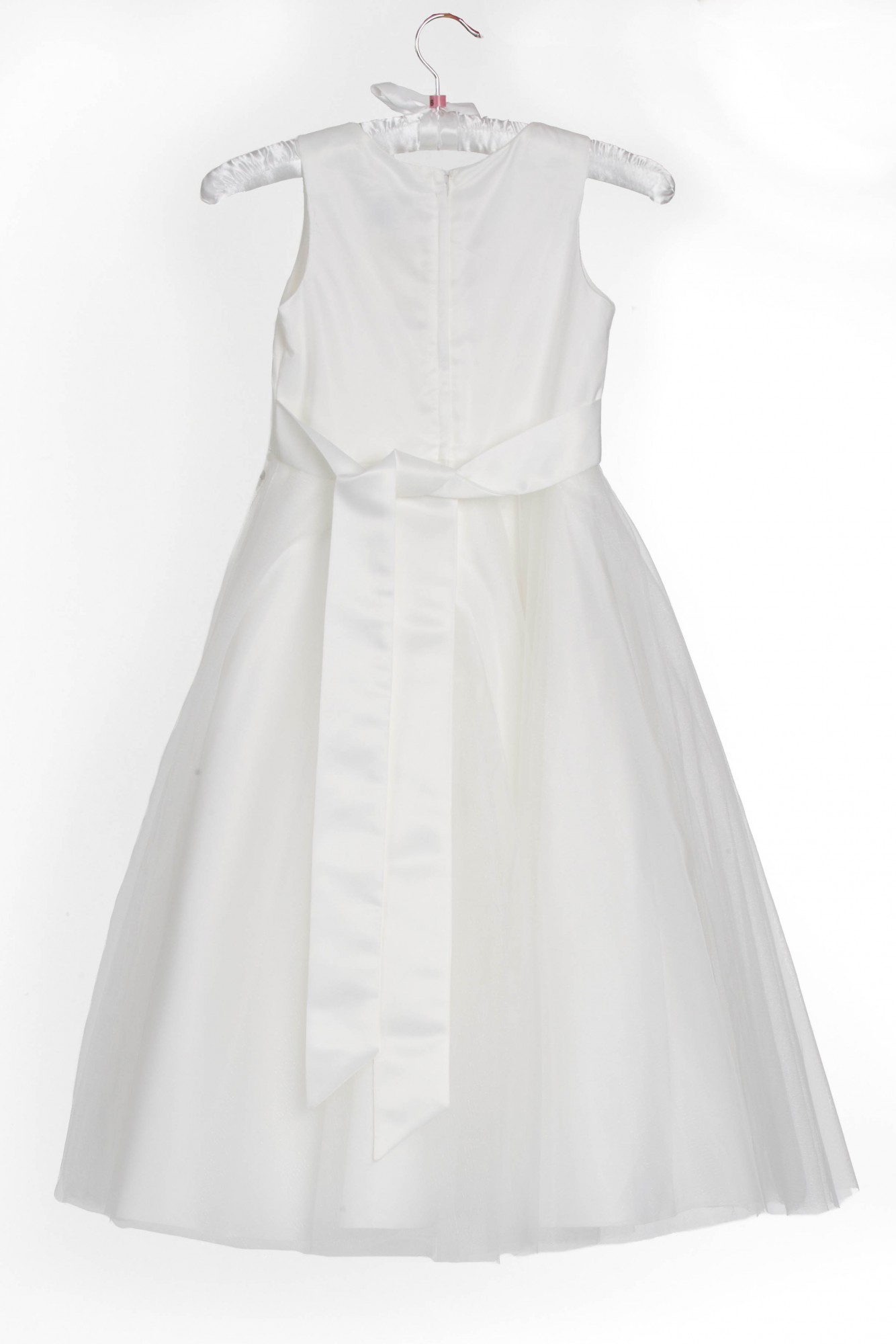 Ballerina length with zip fastener and sash that ties into a bow at the back.