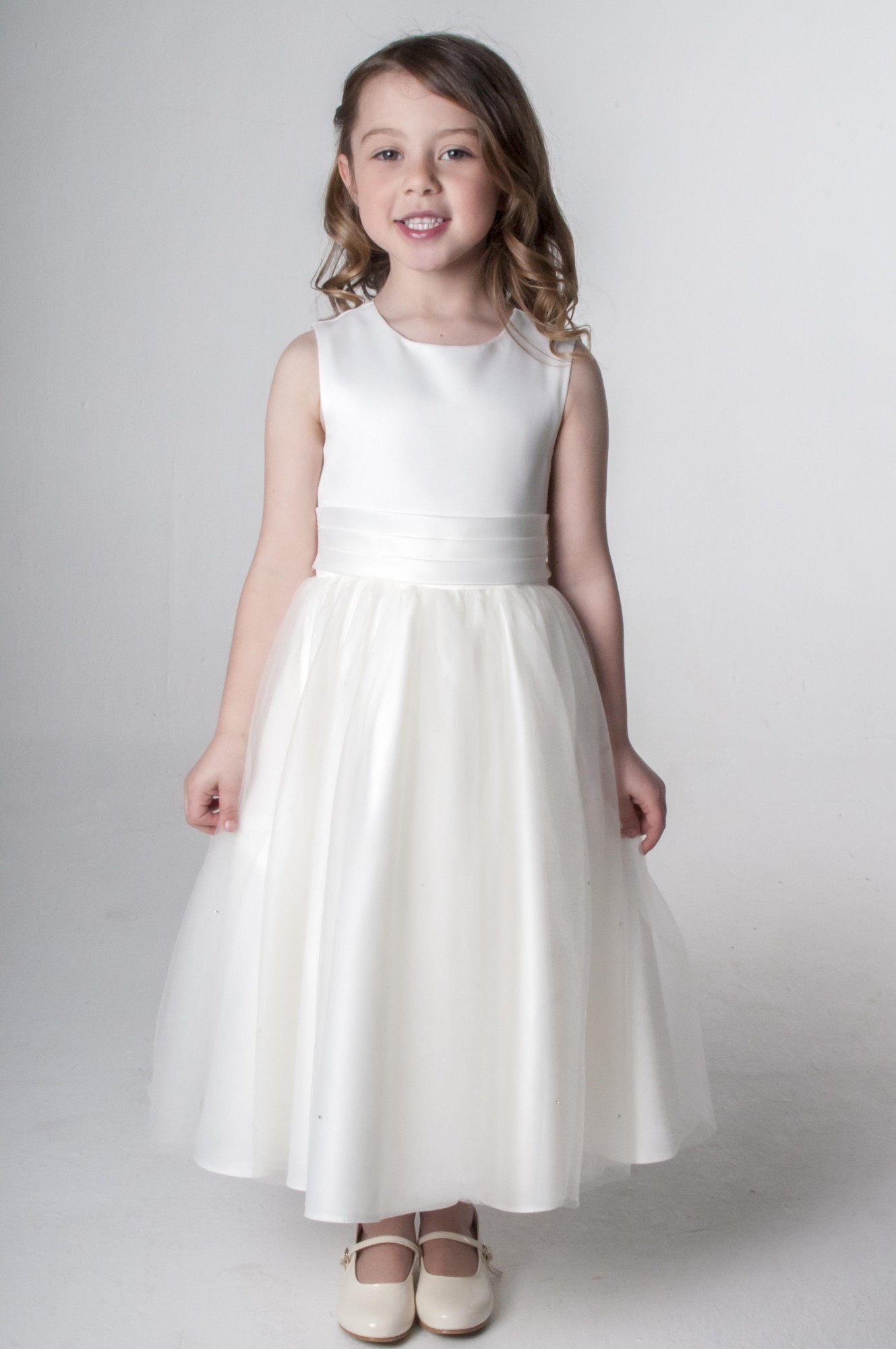 Sleeveless dress with pleated sash at the waist and scattered diamonte on the skirt.